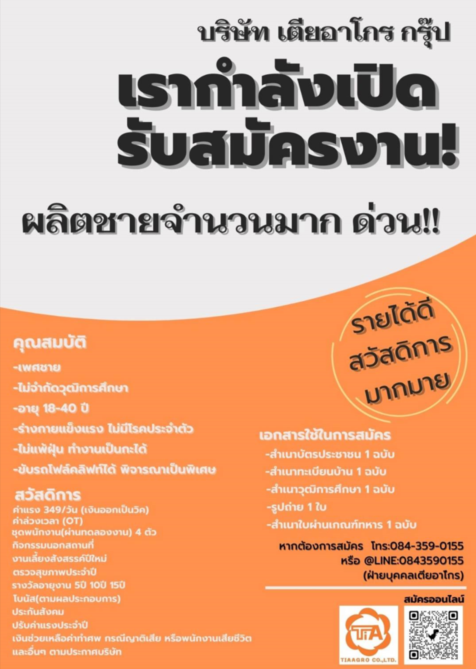 เปิดรับสมัครพนักงานชาย ด่วน จำนวนมาก