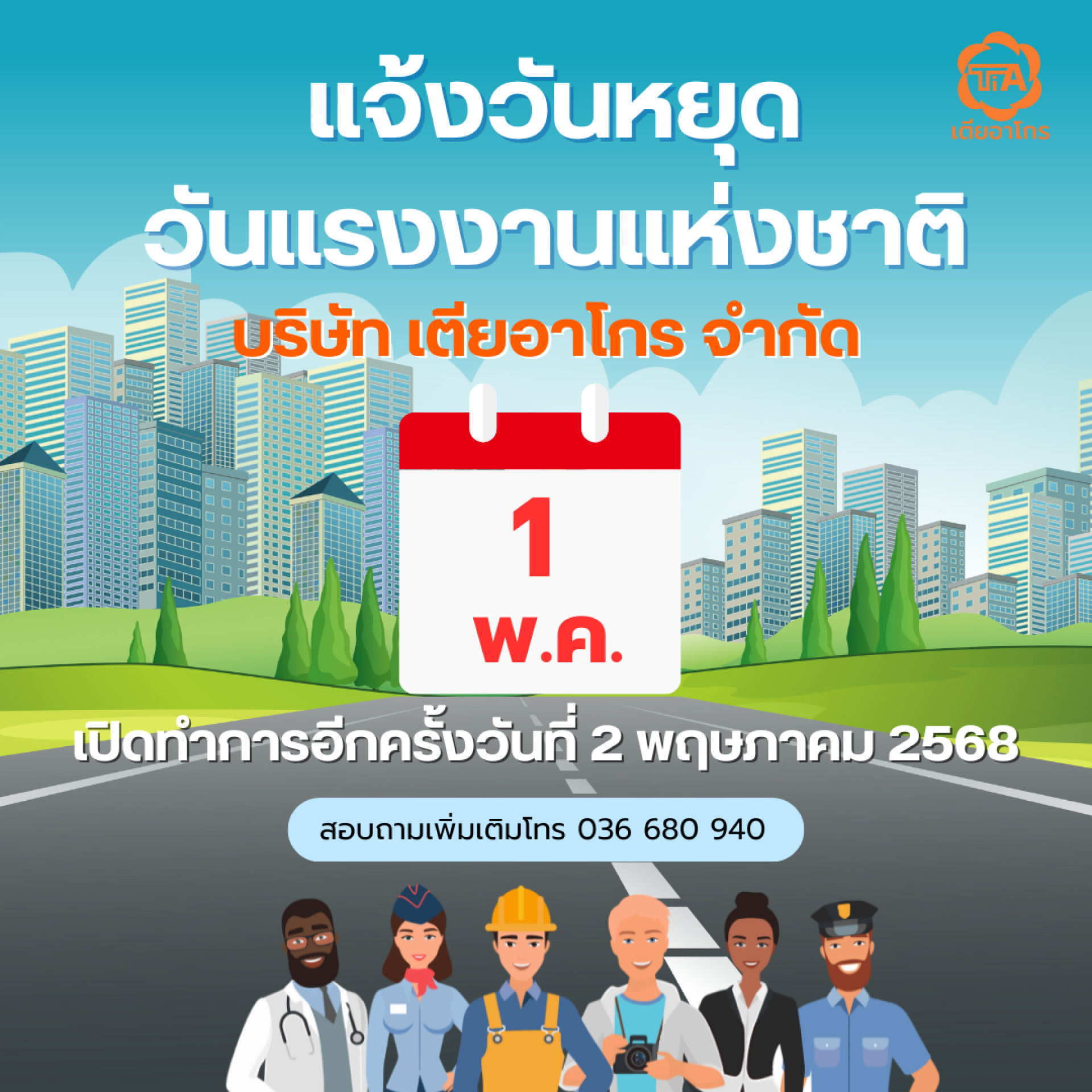 บริษัท เตียอาโกร จำกัด ประกาศวันหยุดให้บริการ ในวันที่ 12-13 ตุลาคม 2568